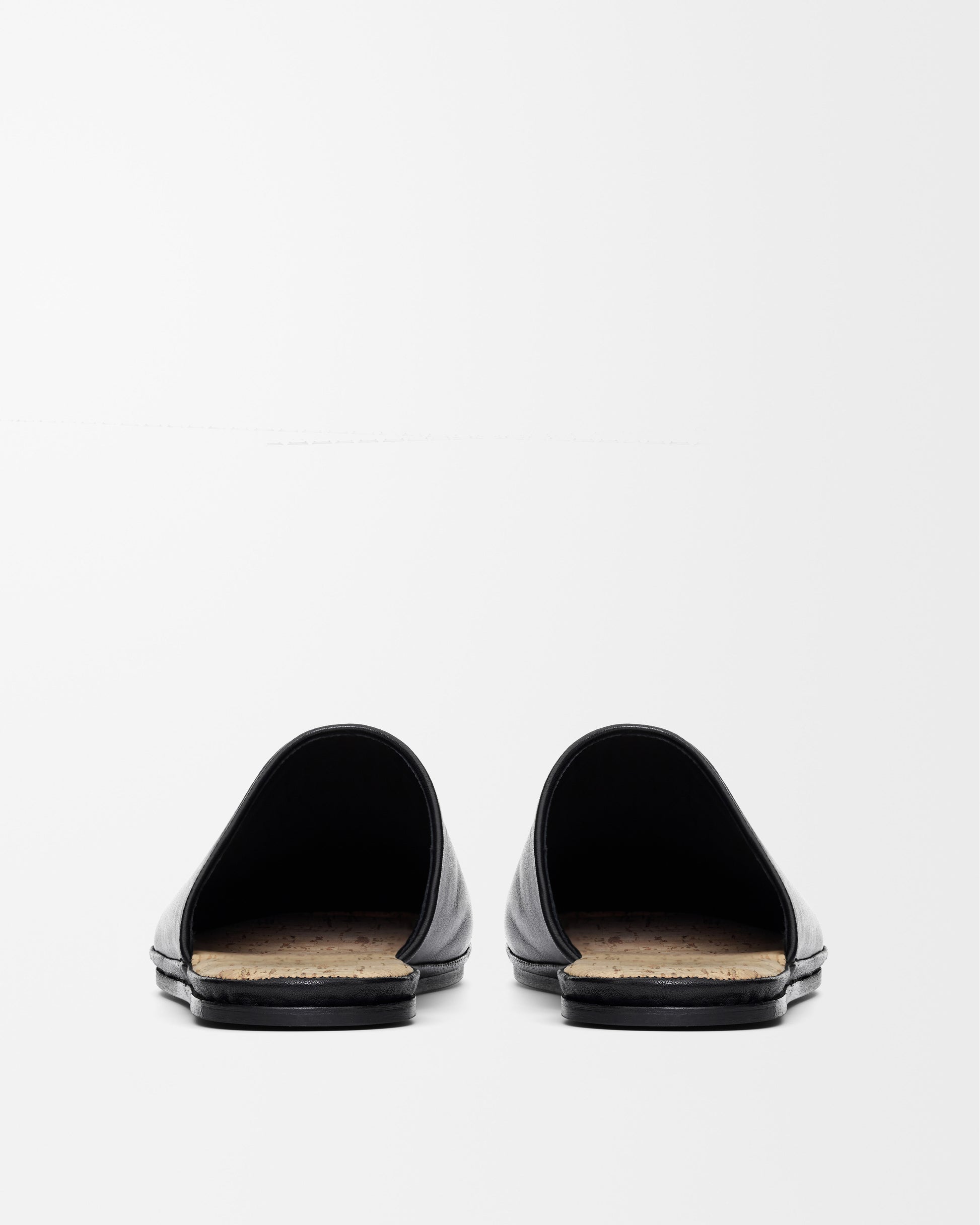 The Dume is cut from smooth calf leather and set on a cork insole lined with soft calfskin for natural comfort. Its pared-back mule silhouette is grounded with a Vero Cuoio flat leather sole for durability, while California construction adds flexibility and ease. Minimal in form yet substantial in character, The Dume in black calf delivers timeless style in its most effortless shape.